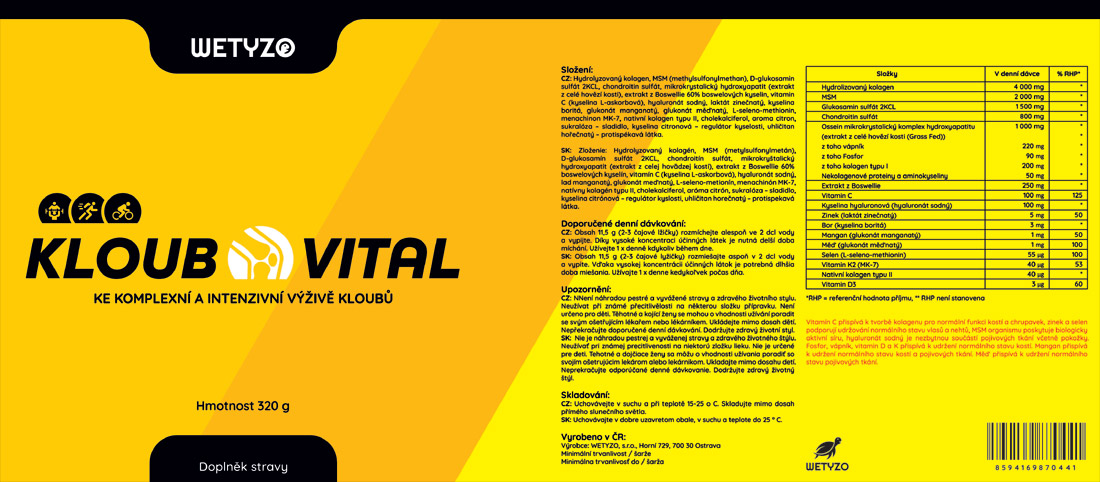 - Spektrum dobře vstřebatelných vitamínů a minerálních látek pro zdraví pohybového aparátu