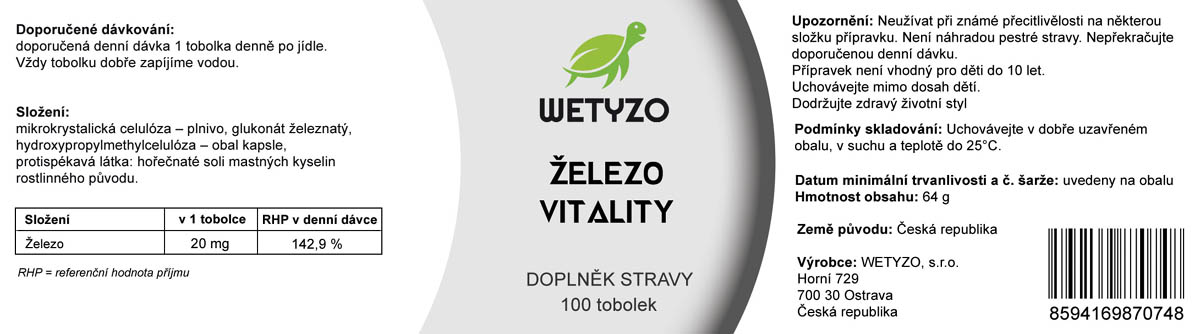 Železo Vitality je doplněk, který se používá pro prevenci nízkých hladin železa v krvi (například v důsledku anémie nebo těhotenství). Železo je důležitý minerál, který tělo potřebuje k tvorbě červených krvinek a k udržení dobrého zdravotního stavu.