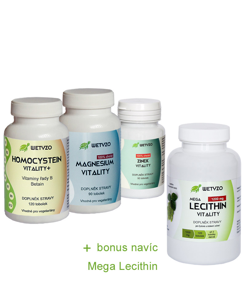 • Homocystein Vitality – komplex vitaminů B6, B9 (kyselina listová) a B12, které přispívají ke správnému metabolismu homocysteinu.